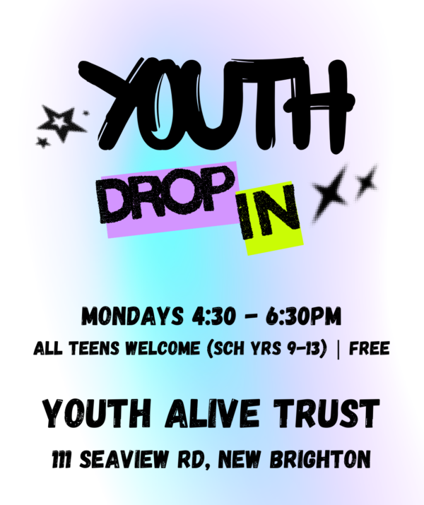 2) Surge Youth Club. Every Monday from 6:30-8:30pm. Catch up with mates, and have some fun with activities such as Taskmaster, Sardines and trips out. This Monday we’re launching with Kai & Kawa from 6:30pm. Free (apart from trips out). More info and termly brochure at: www.yat.org.nz/safer-streets/surge