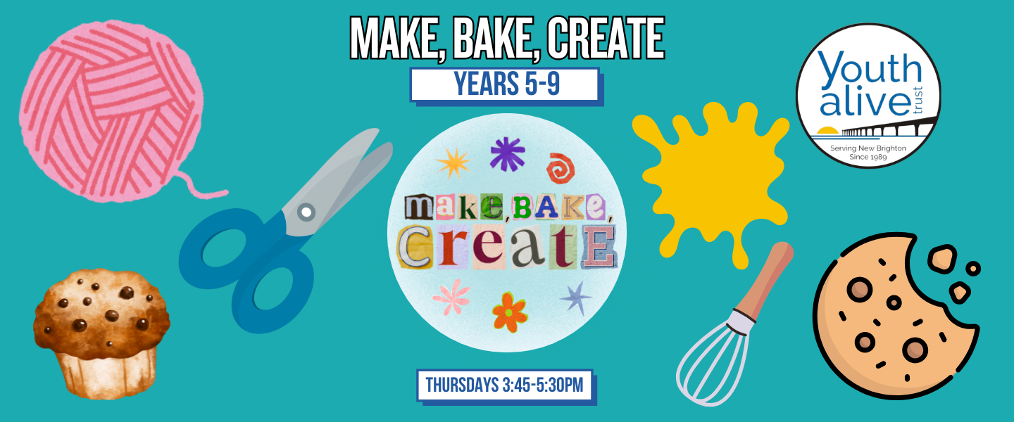 Make Bake Create is an exciting new club combining our popular Craft Club and Kitchen Klub! Each Thursday afternoon includes either a crafting or baking activity, while chilling out with friends and our leaders.