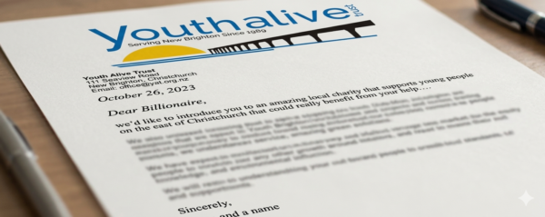 Without the generous and consistent support of donors and grant making bodies, the work of Youth Alive Trust would not be possible. We have a budget of around $1 million. See the Charities Commission Register to read our latest audited accounts.